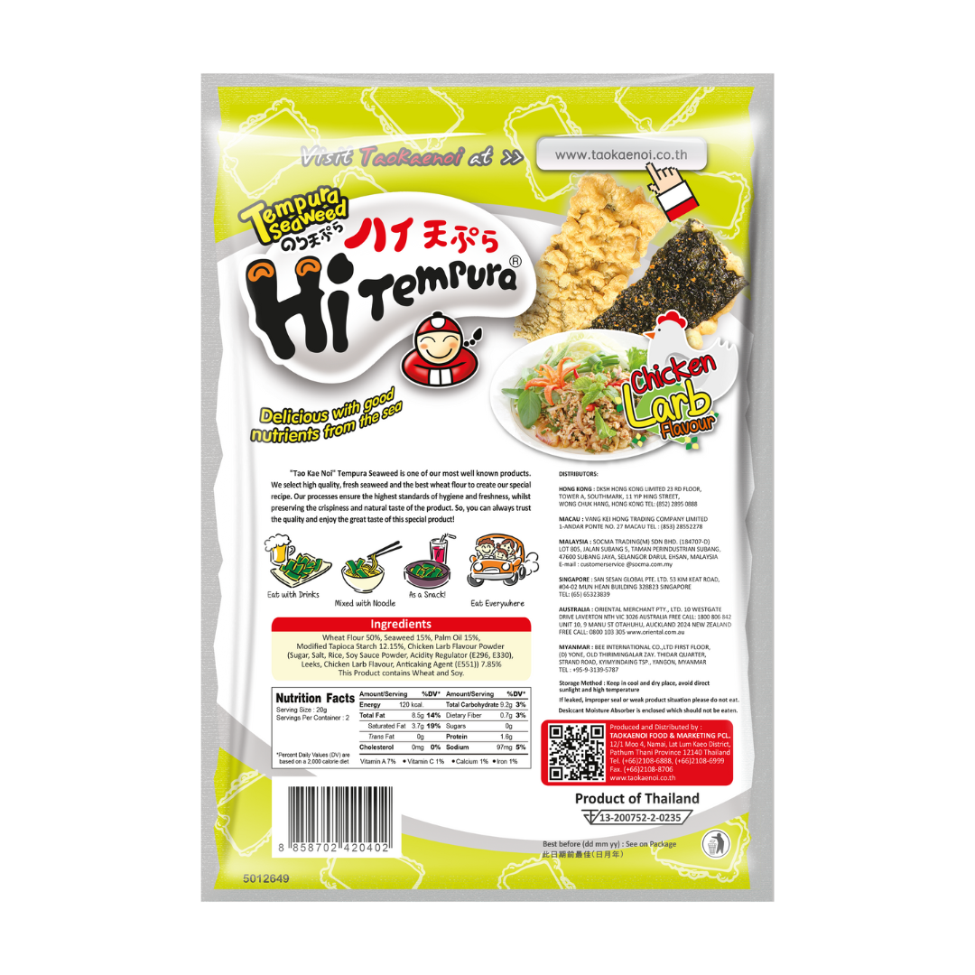 Koostisosad: NISUjahu, merevetikas, palmiõli, modifitseeritud tapioki tärklis, vürtsisegu Larb.