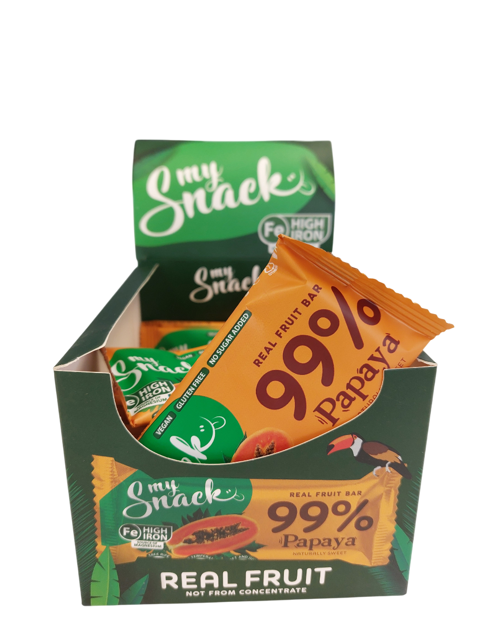 Papaia puuviljabatoonid sisaldavad vaid küpseid magusaid vilju ja naturaalseid vitamiine. Puuviljabatooni on hea kotti pista, et turgutada keha ja vaimu enne tähtsaid ülesandeid. Papaiast leiab näiteks magneesiumi, mis on oluline südame tööks, sest aitab tagada normaalset vereringet. Lisaks turgutab papaia seedimist ning aitab kaasa ainevahetuse kiirendamisele.