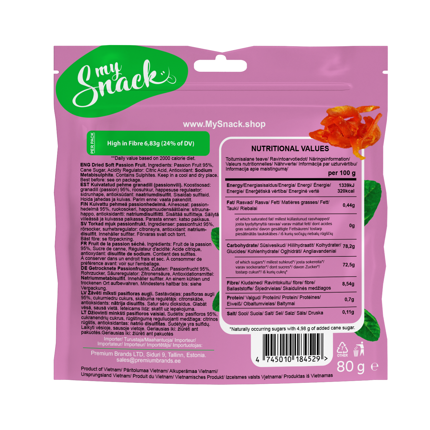 Pehme kuivatatud granadill (passionvili) 80g