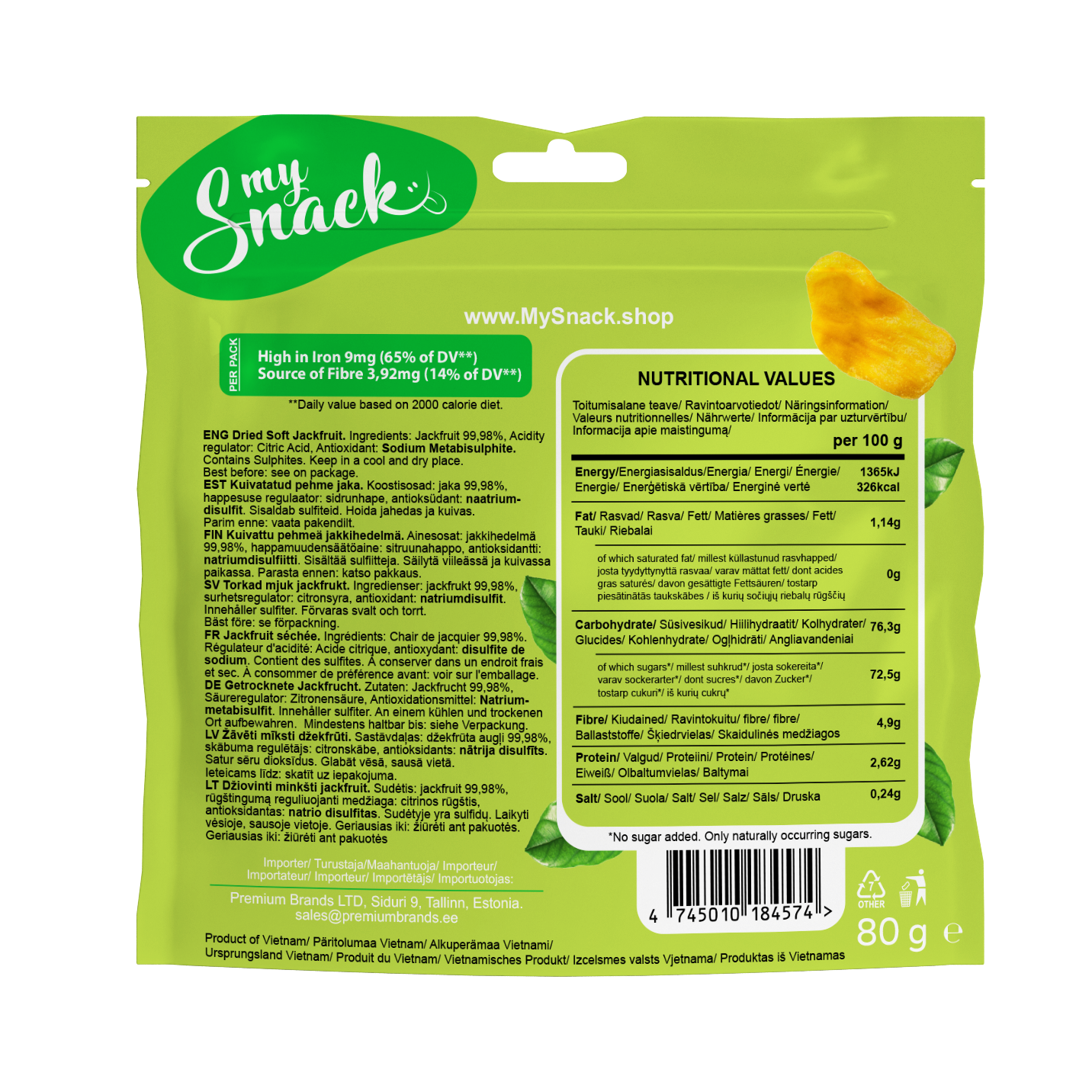 - 80g kuivatatud puuviljade valmistamiseks on kasutatud 1000g küpset mangot